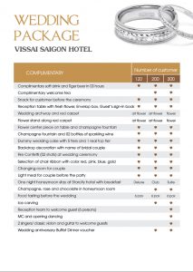 Say “I do” at Vissai Saigon Hotel. A wedding at Vissai Saigon Hotel is not just exchanging vows. It is the grand occasion to share your happiness with your friends and family. Vissai Saigon Hotel’s dedicated team is on hand to provide personalized attention and arrangements to make your special day a uniquely stylish and romantic experience of a life time.
